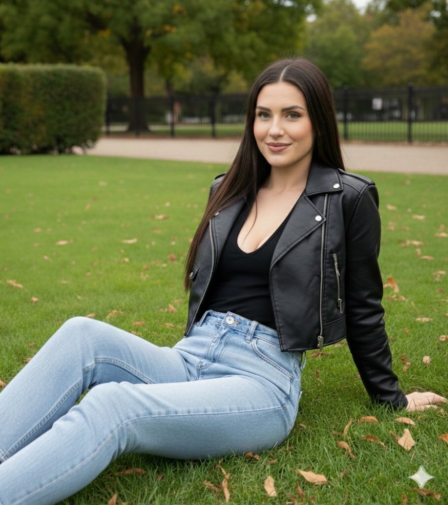 { "image_generation_request": { "content": { "subject_details": { "identity": { "name": "England model", "gender": "female" }, "appearance": { "hair": { "color": "dark brown", "texture": "straight", "length": "long" }, "expression": "smiling gently", "makeup": { "style": "light", "lip_color": "rosy" } }, "action_and_pose": { "posture": "reclined sitting", "placement": "on grass", "gaze": "direct at camera", "arm_position": "hands behind back supporting body" }, "attire": { "outerwear": { "item": "cropped jacket", "material": "leather", "color": "black", "state": "buttoned open" }, "upper_body": { "item": "form-fitting top", "color": "black", "layer": "under jacket" }, "lower_body": { "item": "jeans", "material": "denim", "wash": "light blue", "fit": "high-waisted" } } }, "scene_details": { "environment": { "type": "park", "ground_surface": "green grass", "ground_elements": [ "scattered dry autumn leaves" ] }, "background_elements": [ "lush green trees", "tall hedge on the left", "black metal fence", "gravel path in the distance" ], "lighting_conditions": { "source": "natural daylight", "quality": [ "bright", "clear" ] } } }, "execution_parameters": { "photography_style": { "shot_type": "photograph", "aesthetic": [ "clean", "natural", "detailed" ], "composition": { "camera_angle": "eye-level", "framing": "well-structured" }, "focus_and_texture": { "focus": "sharp", "priority_textures": [ "hair", "leather", "denim", "grass" ] } }, "technical_specs": { "resolution": "4K Ultra HD", "aspect_ratio": "9:16" } } } }{ "image_generation_request": { "content": { "subject_details": { "identity": { "name": "{argument name=\"model name\" default=\"England model\"}", "gender": "female" }, "appearance": { "hair": { "color": "dark brown", "texture": "straight", "length": "long" }, "expression": "smiling gently", "makeup": { "style": "light", "lip_color": "rosy" } }, "action_and_pose": { "posture": "reclined sitting", "placement": "on grass", "gaze": "direct at camera", "arm_position": "hands behind back supporting body" }, "attire": { "outerwear": { "item": "cropped jacket", "material": "leather", "color": "black", "state": "buttoned open" }, "upper_body": { "item": "form-fitting top", "color": "black", "layer": "under jacket" }, "lower_body": { "item": "jeans", "material": "denim", "wash": "light blue", "fit": "high-waisted" } } }, "scene_details": { "environment": { "type": "park", "ground_surface": "green grass", "ground_elements": [ "scattered dry autumn leaves" ] }, "background_elements": [ "lush green trees", "tall hedge on the left", "black metal fence", "gravel path in the distance" ], "lighting_conditions": { "source": "natural daylight", "quality": [ "bright", "clear" ] } } }, "execution_parameters": { "photography_style": { "shot_type": "photograph", "aesthetic": [ "clean", "natural", "detailed" ], "composition": { "camera_angle": "eye-level", "framing": "well-structured" }, "focus_and_texture": { "focus": "sharp", "priority_textures": [ "hair", "leather", "denim", "grass" ] } }, "technical_specs": { "resolution": "4K Ultra HD", "aspect_ratio": "9:16" } } } }