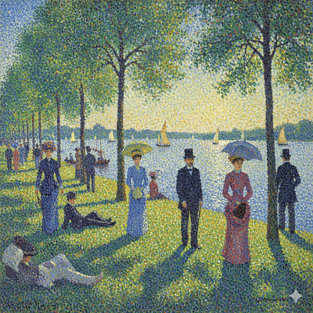 输出一幅 修拉 点彩画派风格的画作!