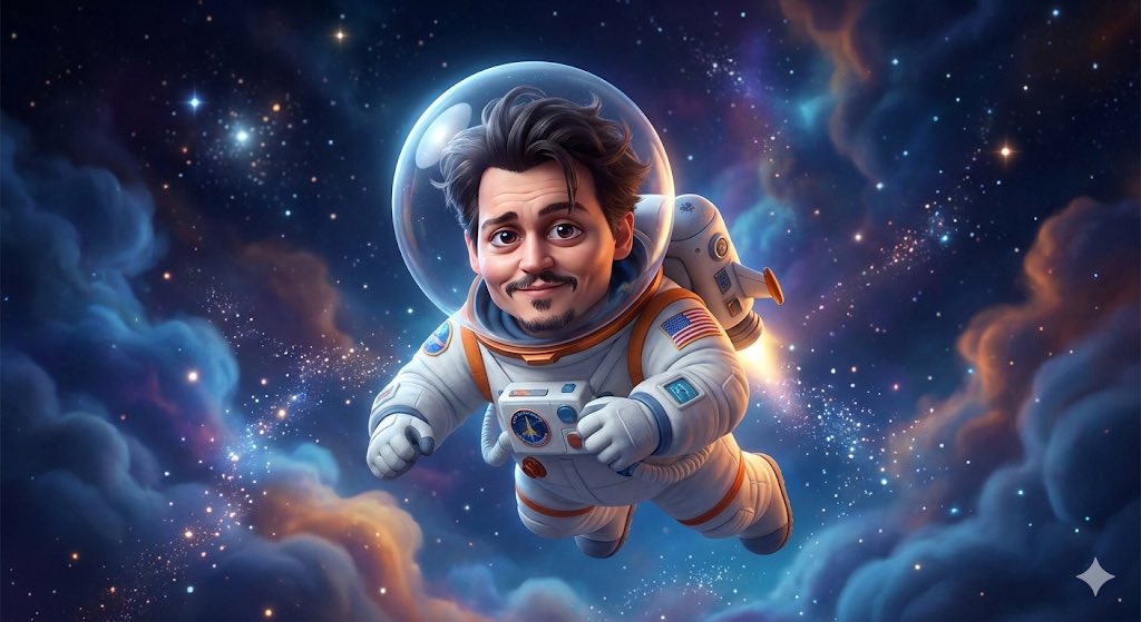 <span>一个风格化的 3D 卡通形象,是身穿可爱迷你宇航服的 </span><span class="bg-blue-200 text-blue-800 px-1.5 py-[1px] border border-black font-bold">[celebrity]</span><span>,漂浮在群星之中。头盔超大,眼睛晶莹,背着小巧的喷气背包。以柔和的皮克斯风格渲染,带有漂浮的粒子、发光的星云色彩和柔和的环境光。</span>