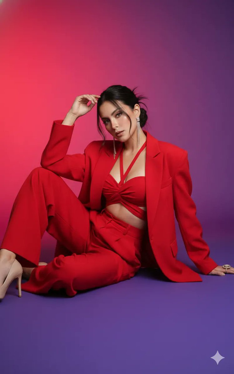 [ { "tasvir_ki_id": "20260206_134643", "fard_ki_tafseel": { "libas_ka_style": "Modern Formal / Power Dressing", "rang_ka_intekhab": "Vibrant Scarlet Red", "outerwear": "Oversized Red Blazer jisay kandhon par dhila chhoda gaya hai", "innerwear": "Criss-cross halter neck crop top", "bottomwear": "High-waisted wide-leg trousers", "accessories": { "earrings": "Silver-toned crystal drop earrings", "jewelry": "Statement ring on left hand", "footwear": "Pointed-toe nude pumps" }, "makeup_aur_baal": { "hairstyle": "Soft updo jis mein samne se baal chehre par aa rahe hain", "makeup": "Smokey eyes aur neutral lip shade" } }, "photography_aur_mahaul": { "pose": "Zameen par baith kar aik hath sar par rakha hua hai", "background": "Dual-tone gradient effect (Pinkish-red se Purple ki taraf)", "roshni": "Soft studio lighting jo chehre ke features ko highlight kar rahi hai" } }, { "tasvir_ki_id": "20260206_134637", "fard_ki_tafseel": { "libas_ka_khusoosi_izafa": "Kamar par safaid rang ka lamba ribbon/belt bandha gaya hai", "outerwear": "Wohi surkh blazer pehna hua hai", "innerwear": "Matching red bustier top", "accessories": { "earrings": "Vohi lambay crystal earrings", "jewelry": "Badi siyah rang ki gemstone ring", "footwear": "High-heeled beige stilettoes" }, "makeup_aur_baal": { "hairstyle": "High messy bun", "makeup": "Dewy skin finish ke saath bold eye makeup" } }, "photography_aur_mahaul": { "pose": "Full squat (ukhru) pose, camera ki taraf dekhte hue", "background": "Split color background (Purple parda aur surkh farsh)", "zaviya": "Eye-level shot jo confidence zahir karta hai" } } ][ { "image_id": "20260206_134643", "person_details": { "clothing_style": "现代正装 / 权力着装", "color_selection": "鲜艳的猩红色", "outerwear": "宽松的红色西装外套,随意地披在肩上", "innerwear": "交叉挂脖露脐上衣", "bottomwear": "高腰阔腿裤", "accessories": { "earrings": "银色水晶吊坠耳环", "jewelry": "左手戴着一枚个性戒指", "footwear": "尖头裸色高跟鞋" }, "makeup_and_hair": { "hairstyle": "柔和的盘发,前额有发丝垂落", "makeup": "烟熏妆和中性唇色" } }, "photography_and_environment": { "pose": "坐在地上,一只手放在头上", "background": "双色渐变效果(从粉红色到紫色)", "lighting": "柔和的影棚灯光,突出面部特征" } }, { "image_id": "20260206_134637", "person_details": { "special_clothing_addition": "腰间系着一条白色长丝带/腰带", "outerwear": "穿着同样的红色西装外套", "innerwear": "配套的红色抹胸上衣", "accessories": { "earrings": "同样的细长水晶耳环", "jewelry": "大颗黑色宝石戒指", "footwear": "米色细高跟鞋" }, "makeup_and_hair": { "hairstyle": "高位凌乱发髻", "makeup": "大胆的眼妆,肌肤呈现水润光泽" } }, "photography_and_environment": { "pose": "完全蹲姿(ukhru 姿势),面向镜头", "background": "分色背景(紫色窗帘和红色地板)", "angle": "平视视角,展现自信" } } ]