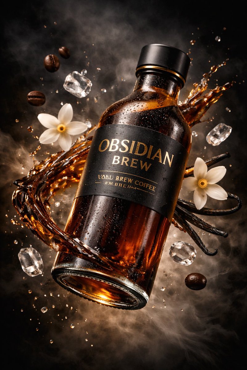 { "master_prompt": { "product": { "type": "luxury cold brew coffee bottle", "brand_name": "OBSIDIAN BREW", "container": "sleek cylindrical glass bottle", "finish": "smoked amber glass with subtle matte coating", "label_style": "minimalist typography with embossed gold foil accents", "cap": "brushed metal cap with satin black finish" }, "composition": { "scene_type": "ultra-cinematic commercial product photography", "orientation": "vertical", "aspect_ratio": "3:4", "camera_angle": "dynamic diagonal tilt", "subject_position": "floating mid-air, slightly off-center for dramatic tension", "motion": "frozen liquid coffee swirls and splashes suspended in space" }, "environment": { "background": "deep charcoal-to-black gradient backdrop", "atmosphere": "volumetric mist and fine coffee vapor drifting around the product", "elements": [ "slow-motion coffee waves", "glossy roasted coffee beans suspended mid-air", "shattered crystal-clear ice fragments", "microscopic condensation droplets on glass surface" ] }, "lighting": { "style": "low-key dramatic studio lighting", "key_light": "soft directional light highlighting bottle contours", "rim_lights": "strong edge lights outlining the silhouette", "fill_light": "minimal, preserving deep shadows", "highlights": "metallic gold reflections on label and cap", "contrast": "high contrast with rich blacks and controlled specular highlights" }, "color_palette": { "primary_colors": ["black", "espresso brown", "smoked amber"], "accent_colors": ["metallic gold", "warm caramel highlights"] }, "camera_settings": { "lens": "macro cinema lens", "depth_of_field": "shallow, subject-isolated focus", "focus_point": "brand logo and glass texture", "clarity": "extreme micro-detail visibility" }, "render_quality": { "resolution": "8K ultra-high-definition", "style": "hyper-realistic premium advertising render", "textures": "physically accurate glass, liquid, metal, and condensation", "noise": "none", "artifacts": "none", "sharpness": "ultra-crisp with cinematic softness in background" }, "mood": { "tone": "bold, moody, and ultra-premium", "emotion": "luxury, intensity, craftsmanship, indulgence" }, "final_output": { "usage": "high-end commercial advertising", "branding_focus": "strong brand recall with hero-product dominance", "visual_style": "luxury beverage campaign aesthetic" } }{ "master_prompt": { "product": { "type": "奢华冷萃咖啡瓶", "brand_name": "{argument name=\"brand name\" default=\"OBSIDIAN BREW\"}", "container": "光滑的圆柱形玻璃瓶", "finish": "烟熏琥珀色玻璃,带有微妙的哑光涂层", "label_style": "极简主义排版,带有浮雕金色箔片点缀", "cap": "拉丝金属盖,缎面黑色饰面" }, "composition": { "scene_type": "超电影感商业产品摄影", "orientation": "垂直", "aspect_ratio": "3:4", "camera_angle": "动态对角倾斜", "subject_position": "悬浮在半空中,略微偏离中心以营造戏剧张力", "motion": "凝固的液态咖啡漩涡和飞溅物悬浮在空间中" }, "environment": { "background": "深木炭色至黑色的渐变背景", "atmosphere": "体积雾和细微的咖啡蒸汽在产品周围飘散", "elements": [ "慢动作咖啡波浪", "悬浮在半空中的光泽烘焙咖啡豆", "破碎的晶莹冰块", "玻璃表面微小的冷凝水滴" ] }, "lighting": { "style": "低调戏剧性影棚照明", "key_light": "柔和的方向光突出瓶身轮廓", "rim_lights": "强烈的边缘光勾勒出轮廓", "fill_light": "极少,保留深邃阴影", "highlights": "标签和瓶盖上的金属金色反光", "contrast": "高对比度,深邃的黑色和受控的镜面高光" }, "color_palette": { "primary_colors": ["黑色", "浓缩咖啡棕色", "烟熏琥珀色"], "accent_colors": ["金属金色", "温暖的焦糖高光"] }, "camera_settings": { "lens": "微距电影镜头", "depth_of_field": "浅景深,主体突出对焦", "focus_point": "品牌标志和玻璃纹理", "clarity": "极致的微观细节可见度" }, "render_quality": { "resolution": "8K 超高清", "style": "超现实主义高端广告渲染", "textures": "物理精确的玻璃、液体、金属和冷凝水", "noise": "无", "artifacts": "无", "sharpness": "超清晰,背景具有电影般的柔和感" }, "mood": { "tone": "大胆、忧郁、超高端", "emotion": "奢华、强烈、精湛工艺、放纵" }, "final_output": { "usage": "高端商业广告", "branding_focus": "强大的品牌识别度,以主打产品为主导", "visual_style": "奢华饮品广告系列美学" } }