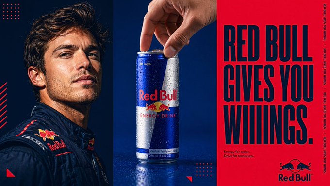 A professional 16:9 brand advertising poster for [BRAND], split into three horizontal panels. Left panel: a close-up portrait of a person in brand-colored clothing, dramatic studio lighting, direct or slightly off-camera gaze. Center panel: a hero shot of the brand's product with a hand interacting with it, clean background in the brand's primary color. Right panel: solid brand-color background with oversized bold serif or condensed sans-serif headline text in the secondary color, brand tagline in small text below, brand logo bottom right corner, and the headline phrase repeated vertically in tiny text along the right edge as a design element. Small geometric shapes and dot grid patterns as decorative accents. Overall aesthetic: high-end commercial photography, tight color palette of two brand colors only, editorial and cinematic feel. Photorealistic. Ultra HD.