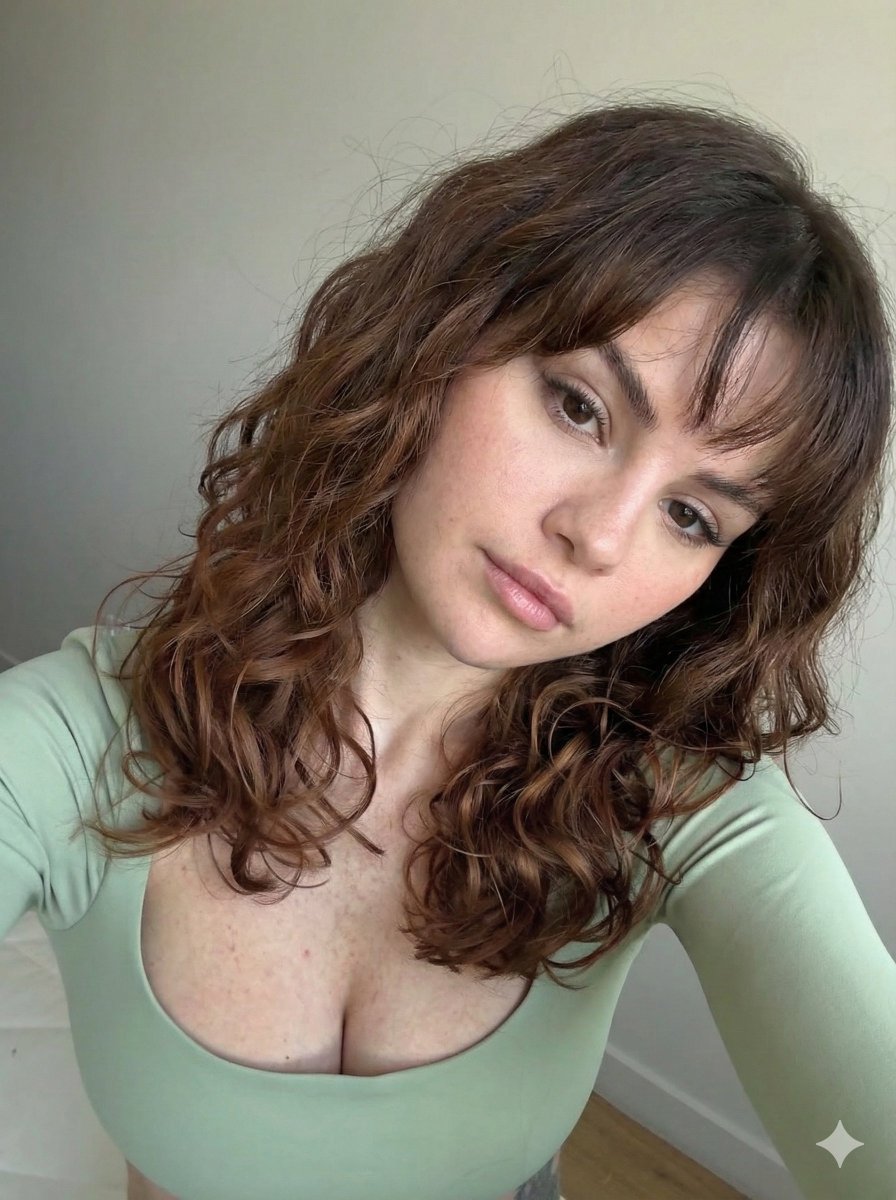 { "prompt_type": "Ultra Photorealistic Portrait", "subject": { "demographics": "Young woman, roughly 20s", "hair": { "color": "Vibrant auburn / ginger red", "texture": "Messy, voluminous natural curls and waves", "style": "Shoulder-length with wispy, face-framing curtain bangs", "detail": "Individual strands visible, frizz texture caught in light" }, "face": { "skin": "Fair complexion, highly detailed texture with visible natural freckles scattered across nose and cheeks", "eyes": "Soft brown, gazing directly into lens", "lips": "Full, plump, glossy light pink lips", "expression": "Neutral, soft, slightly alluring, relaxed pout" } }, "apparel": { "garment": "Long-sleeve fitted top", "color": "Pastel sage green / matcha green", "neckline": "Deep U-shape or scoop neckline", "material": "Smooth, stretch fabric (likely activewear or cotton blend)", "fit": "Tight, form-fitting" }, "pose": { "angle": "Selfie perspective, slightly high angle looking down", "position": "Head tilted to the right, shoulder slightly raised", "framing": "Upper body / bust shot", "composition": "Intimate close-up, centered subject" }, "lighting": { "source": "Natural diffused window light", "direction": "Front-facing", "quality": "Soft and flattering, creating gentle highlights on the forehead, nose, and lips", "shadows": "Minimal soft shadows under the jawline and hair" }, "environment": { "background": "Plain, minimalist interior wall", "color": "Off-white / light grey", "context": "Indoors, simple bedroom or living space", "clutter": "None, clean background focus" }, "mood_and_atmosphere": { "vibe": "Candid, effortless, intimate, natural beauty", "tone": "Warm, soft, authentic" }, "technical_camera_details": { "style": "Raw photography, smartphone selfie aesthetic", "resolution": "8K, highly detailed", "lens": "24mm wide angle (simulating phone camera)", "aperture": "f/2.8 for slight depth of field blurring the background", "film_stock": "Kodak Portra 400 simulation for warm skin tones", "rendering": "Unreal Engine 5, Octane Render, ray tracing", "texture_quality": "Ultra-realistic skin pores, hair strands, and fabric weave" } }{ "prompt_type": "超写实肖像", "subject": { "demographics": "年轻女性,大约 20 多岁", "hair": { "color": "{argument name=\"hair color\" default=\"鲜艳的红褐色 / 姜红色\"}", "texture": "蓬松、浓密的自然卷发和波浪", "style": "齐肩长发,带有飘逸、修饰脸型的法式刘海", "detail": "发丝清晰可见,发梢的毛躁感在光线下捕捉到" }, "face": { "skin": "白皙肤色,高度细腻的纹理,鼻梁和脸颊散布着清晰可见的自然雀斑", "eyes": "柔和的棕色,直视镜头", "lips": "丰满、饱满、有光泽的淡粉色嘴唇", "expression": "中性、柔和、略带诱惑、放松的嘟嘴" } }, "apparel": { "garment": "长袖修身款上衣", "color": "{argument name=\"top color\" default=\"柔和的鼠尾草绿 / 抹茶绿\"}", "neckline": "深 U 形或大圆领", "material": "光滑、有弹性的面料(可能是运动服或棉混纺)", "fit": "紧身、修身" }, "pose": { "angle": "自拍视角,略微高角度俯视", "position": "头部向右倾斜,肩膀略微抬起", "framing": "上半身 / 胸部特写", "composition": "亲密特写,主体居中" }, "lighting": { "source": "自然漫射窗光", "direction": "正面", "quality": "柔和且讨人喜欢,在前额、鼻子和嘴唇上营造出柔和的高光", "shadows": "下颌线和头发下方有极少的柔和阴影" }, "environment": { "background": "纯色、极简主义的室内墙壁", "color": "米白色 / 浅灰色", "context": "室内,简单的卧室或客厅空间", "clutter": "无,背景干净聚焦" }, "mood_and_atmosphere": { "vibe": "随性、不费力、亲密、自然美", "tone": "温暖、柔和、真实" }, "technical_camera_details": { "style": "原始摄影,智能手机自拍美学", "resolution": "8K,高度细节化", "lens": "24mm 广角(模拟手机摄像头)", "aperture": "f/2.8,用于轻微景深模糊背景", "film_stock": "柯达 Portra 400 模拟,营造温暖肤色", "rendering": "虚幻引擎 5,Octane Render,光线追踪", "texture_quality": "超真实的皮肤毛孔、发丝和织物纹理" } }
