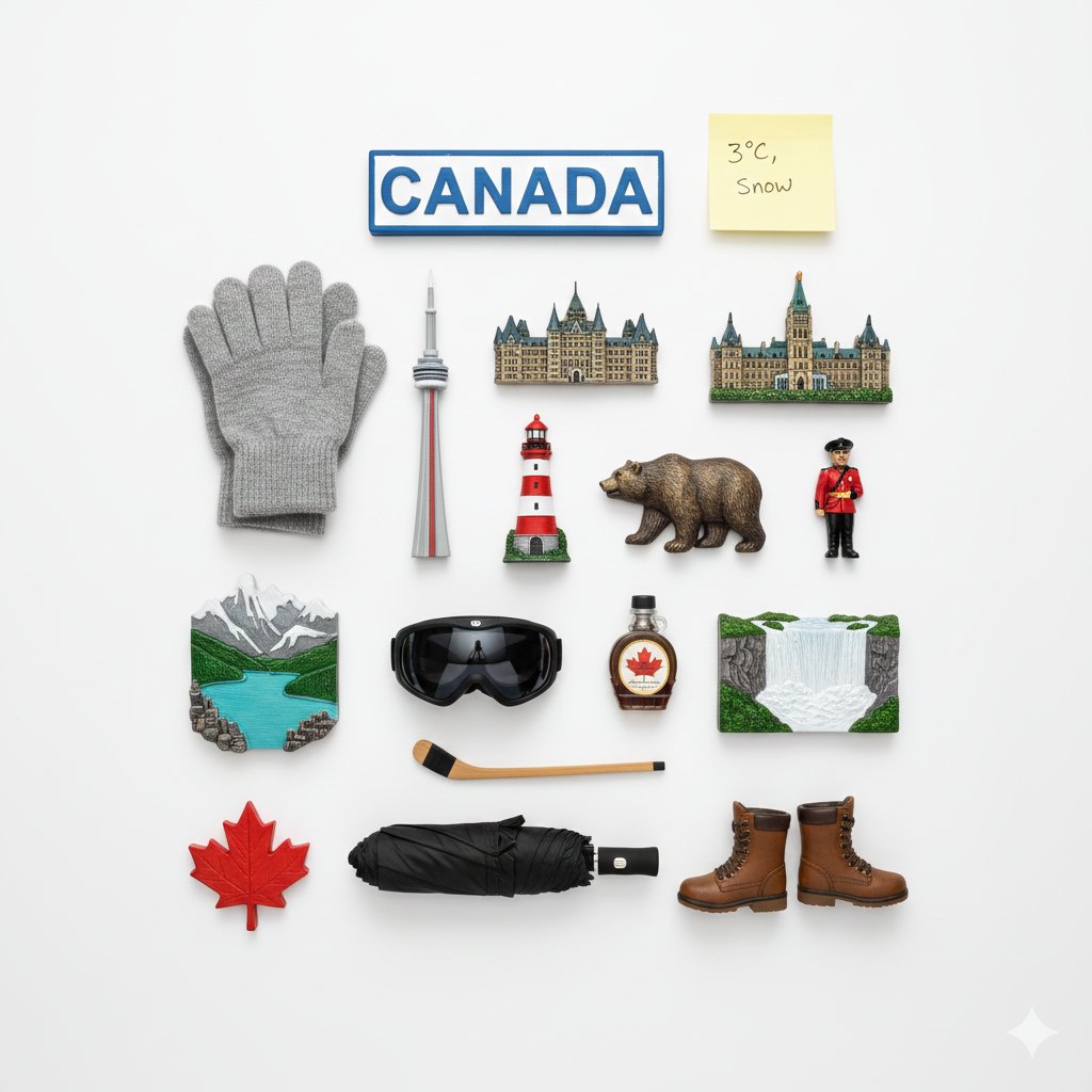 "prompt": "呈现一张清晰、直接俯视拍摄的 {argument name=\"city name\" default=\"[城市]\"} 地标照片,这些地标以精细的 3D 冰箱贴形式展现,整齐地排列成网格状的平铺构图。构图必须干净整洁,物体沿直线和直角对齐。在顶部中央放置一个城市名称冰箱贴作为标题。旁边附带一张黄色手写便签,显示 {argument name=\"weather conditions\" default=\"[今日气温 + 天气状况]\"}(例如:“23°C,小雨”)。在整个场景中散布逼真且符合天气的配饰(例如太阳镜、手套、雨伞或冰镇饮料),以反映当地气候。确保每个物体都是独一无二的,没有重复。场景应光线明亮、曝光均匀、高分辨率、逼真,并以适合社交媒体或杂志印刷的干净平铺风格呈现。",
