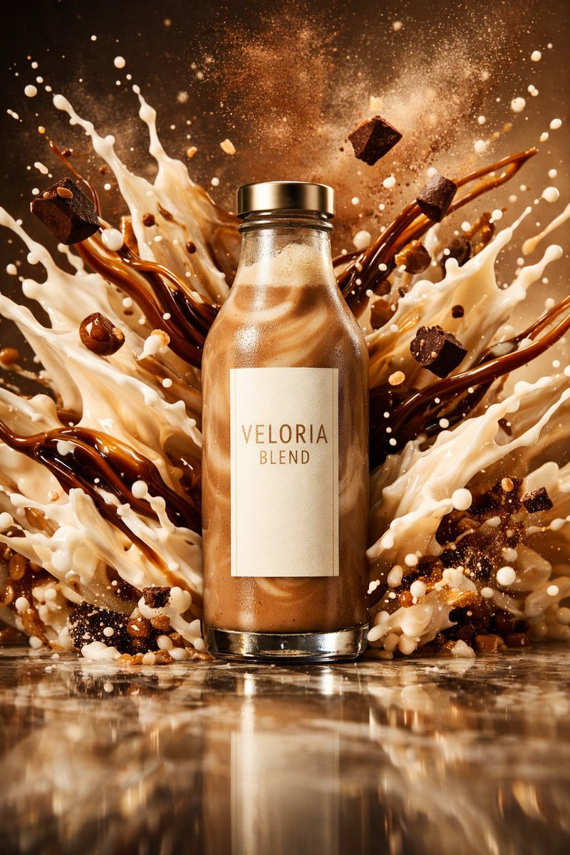 { "master_prompt": { "scene_type": "high-speed commercial luxury shake photography", "product": { "type": "elegant frosted glass bottle filled with velvety gourmet shake", "brand_name": "VELORIA BLEND", "label_design": "minimalist vertical cream label with refined embossed gold serif typography", "liquid_color": "rich caramel mocha with creamy swirls" }, "composition": { "action": "dynamic high-velocity creamy splash explosion", "surrounding_elements": [ "sculptural waves of thick milkshake splashing outward", "silky ribbons of chocolate and caramel drizzle suspended mid-air", "floating shards of dark chocolate and roasted nuts", "soft clouds of cocoa powder diffusing subtly", "fine droplets of creamy mist catching the light" ], "placement": "centered hero bottle with a crisp reflection on a polished marble surface" }, "lighting": { "style": "luxury glossy studio product lighting", "effects": [ "sharp rim lighting to define bottle silhouette", "brilliant highlights on creamy splashes and glossy chocolate drizzle", "soft warm amber glow in the background for indulgent warmth" ] }, "color_palette": { "background": "smooth gradient of warm mocha fading into soft vanilla beige", "accents": "deep chocolate brown, caramel gold, and subtle cream tones" }, "technical_specs": { "camera": "macro lens, eye-level angle", "shutter": "ultra-fast freeze-motion capture", "depth_of_field": "shallow focus on the label, gentle blur on dynamic splash elements", "quality": "8K resolution, ultra-photorealistic texture" } } }{ "master_prompt": { "scene_type": "高速商业奢华奶昔飞溅摄影", "product": { "type": "优雅的磨砂玻璃瓶,内含天鹅绒般顺滑的美味奶昔", "brand_name": "{argument name=\"brand name\" default=\"VELORIA BLEND\"}", "label_design": "极简主义的垂直奶油色标签,带有精致的浮雕金色衬线字体", "liquid_color": "浓郁的焦糖摩卡色,带有奶油漩涡" }, "composition": { "action": "动态高速奶油飞溅爆炸", "surrounding_elements": [ "厚实奶昔向外飞溅的雕塑般波浪", "巧克力和焦糖细流如丝带般悬浮在半空中", "漂浮的黑巧克力碎片和烤坚果", "可可粉的柔和云雾微妙地弥漫开来", "捕捉光线的细小奶油雾滴" ], "placement": "居中放置的英雄产品瓶,在抛光大理石表面上投射出清晰的倒影" }, "lighting": { "style": "奢华光泽工作室产品照明", "effects": [ "锐利的轮廓光勾勒出瓶身轮廓", "奶油飞溅和光泽巧克力细流上的璀璨高光", "背景中柔和温暖的琥珀色光芒,营造出放纵的温暖感" ] }, "color_palette": { "background": "温暖摩卡色渐变为柔和香草米色的平滑渐变", "accents": "深巧克力棕色、焦糖金色和微妙的奶油色调" }, "technical_specs": { "camera": "微距镜头,平视角度", "shutter": "超高速凝固动态捕捉", "depth_of_field": "标签处浅景深,动态飞溅元素处柔和模糊", "quality": "8K 分辨率,超逼真纹理" } } }