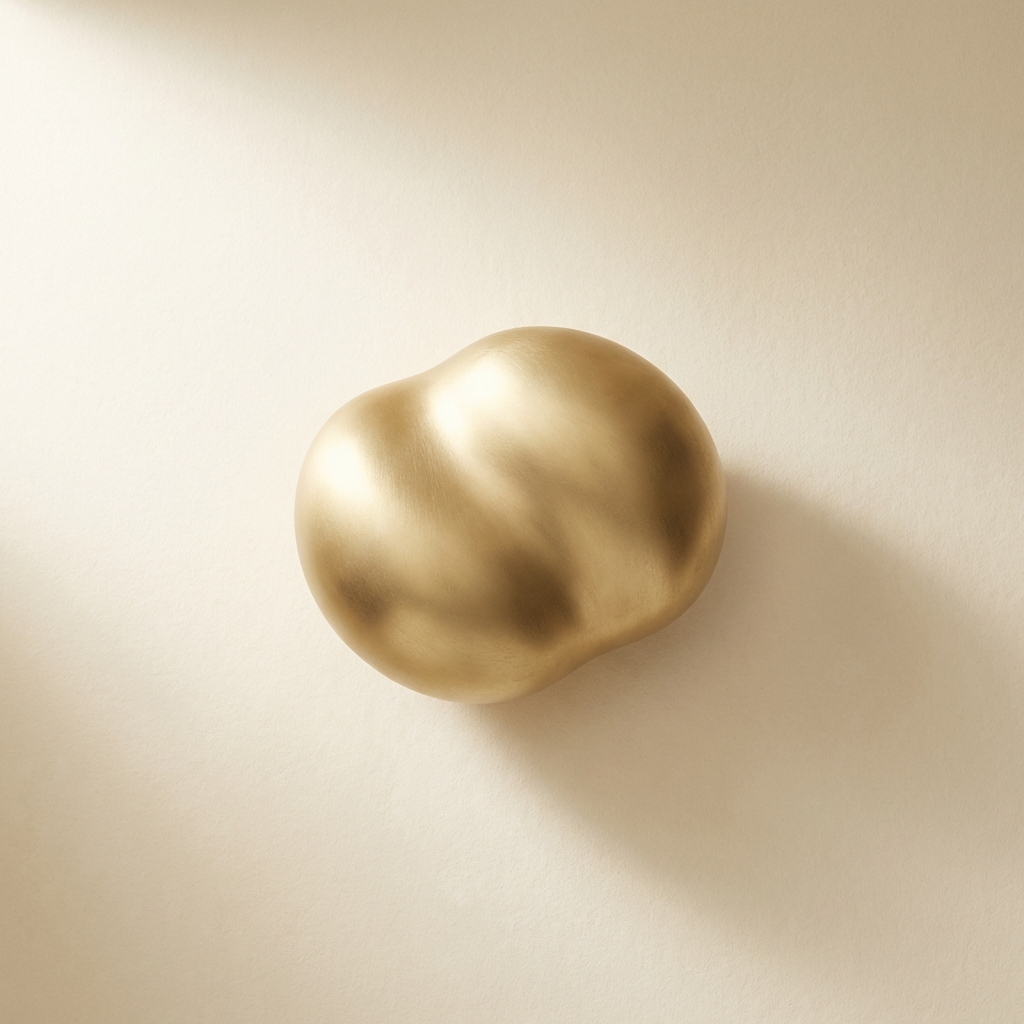 Extremely minimal abstract visual. Single sculptural form, single soft light source, single color family, perfect negative space balance, realistic material shading, no decorative elements, gallery-level composition.