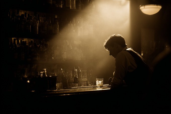 [ SUBJECT ] caught in a Film Noir Spotlight. The scene is dominated by shadows, with a single, harsh light source revealing only a portion of the subject. Use [ COLOR1 ] and [ COLOR2 ] to tint the light, adding a touch of drama and intrigue.