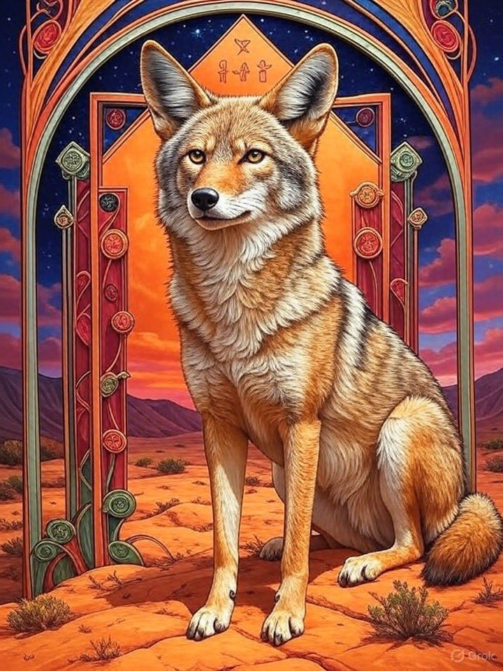 一头野牛位于一系列彩色几何形状的中心,周围环绕着代表不同方面的符号,如家庭和家。这件艺术品以油画风格的暖色调为特色,新艺术运动插图展示了华丽的细节和丰富多彩的图案。该场景还包括夜空和沙漠景观。图稿应具有丰富的纹理和具有复杂细节的三维效果。