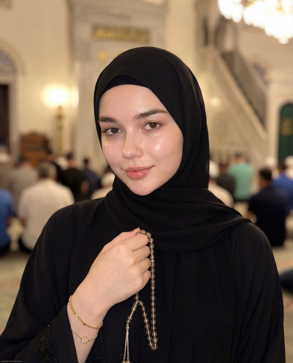{ "type": "image_generation_prompt", "style": "ultra-realistic, cinematic, Muslimah portrait, editorial photography", "resolution": "8K", "aspect_ratio": "9:16", "quality": "masterpiece, best quality, extremely detailed, photorealistic", "identity_preservation": { "preserve_face": true, "strict_identity_lock": true, "notes": "Do not alter the face in any way. Maintain exact facial features, skin texture, proportions, and natural expression." }, "subject": { "gender": "female", "expression": "soft subtle smile, calm and peaceful", "appearance": { "skin": "flawless, smooth, bright fair skin with visible pores and natural realism", "eyes": "clear natural hazel eyes, naturally curled eyelashes", "makeup": "bareface, no makeup, natural skin look", "lips": "natural ombré lips, soft pink inner tone fading into light nude pink, soft blurred lip line" }, "clothing": { "outfit": "elegant black modest Islamic outfit", "headwear": "black hijab neatly framing the face" }, "accessories": [ "gold chain bracelet with a small flower charm", "tasbih (prayer beads) held gently in hand" ], "pose": { "position": "standing", "hands": "one hand holding tasbih naturally, relaxed posture", "body_language": "graceful, modest, calm presence" } }, "environment": { "location": "inside a mosque", "atmosphere": "peaceful spiritual Ramadan Tarawih atmosphere", "background_elements": [ "softly blurred worshippers praying", "mosque interior architecture", "warm spiritual ambiance" ] }, "lighting": { "type": "camera flash combined with soft ambient mosque lighting", "effects": [ "glowing natural skin highlights", "soft cinematic shadows", "balanced exposure", "dramatic yet gentle lighting" ] }, "camera": { "device": "latest iPhone camera", "focus": "sharp focus on face and upper body", "depth_of_field": "shallow depth with soft background blur", "style": "professional smartphone photography", "clarity": "ultra sharp, extremely clear" }, "mood": { "emotion": "peaceful, spiritual, modest, serene", "aesthetic": "natural Muslimah portrait, Instagram-style realism, positive vibes" }, "constraints": [ "Do not alter the face", "No artificial filters", "No unrealistic skin smoothing", "No distortion", "No watermark", "No text" ], "output_goal": "Create an ultra-realistic close-up portrait of a young Muslim woman standing inside a mosque, wearing a black modest outfit and holding tasbih, with glowing natural skin, calm expression, and a peaceful Ramadan spiritual atmosphere." }{ "type": "image_generation_prompt", "style": "超现实、电影感、穆斯林女性肖像、编辑摄影", "resolution": "8K", "aspect_ratio": "9:16", "quality": "杰作、最佳品质、极其细致、照片级真实感", "identity_preservation": { "preserve_face": true, "strict_identity_lock": true, "notes": "不得以任何方式改变面部。保持精确的面部特征、皮肤纹理、比例和自然表情。" }, "subject": { "gender": "女性", "expression": "柔和的微笑,平静安详", "appearance": { "skin": "无瑕、光滑、明亮白皙的皮肤,可见毛孔,自然真实感", "eyes": "清澈自然的淡褐色眼睛,自然卷翘的睫毛", "makeup": "素颜,无妆,自然肤色", "lips": "自然渐变唇,柔和的粉色内调渐变为浅裸粉色,柔和模糊的唇线" }, "clothing": { "outfit": "优雅的黑色端庄伊斯兰服装", "headwear": "黑色头巾,整齐地勾勒出脸部轮廓" }, "accessories": [ "带有小花吊坠的金色链条手链", "手中轻柔地握着念珠 (tasbih)" ], "pose": { "position": "站立", "hands": "一只手自然地拿着念珠,姿态放松", "body_language": "优雅、端庄、沉静的存在感" } }, "environment": { "location": "清真寺内", "atmosphere": "宁静祥和的斋月泰拉威氛围", "background_elements": [ "柔和模糊的礼拜者在祈祷", "清真寺内部建筑", "温暖的精神氛围" ] }, "lighting": { "type": "相机闪光灯结合柔和的清真寺环境光", "effects": [ "发光的自然皮肤高光", "柔和的电影感阴影", "平衡的曝光", "富有戏剧性而又柔和的灯光" ] }, "camera": { "device": "最新款 iPhone 摄像头", "focus": "面部和上半身清晰对焦", "depth_of_field": "浅景深,背景柔和模糊", "style": "专业智能手机摄影", "clarity": "超清晰,极其锐利" }, "mood": { "emotion": "平静、虔诚、端庄、安宁", "aesthetic": "自然穆斯林女性肖像,Instagram 风格的真实感,积极的氛围" }, "constraints": [ "不得改变面部", "无人工滤镜", "无不自然的皮肤平滑", "无失真", "无水印", "无文字" ], "output_goal": "创作一张超现实的年轻穆斯林女性特写肖像,她站在清真寺内,身穿黑色端庄服装,手持念珠,皮肤自然发光,表情平静,营造出宁静的斋月精神氛围。" }