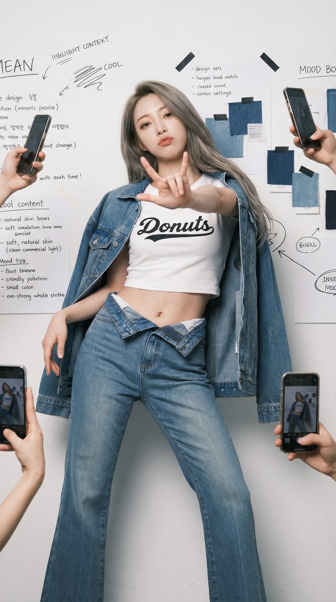 "mood": "Confident, empowered, social-media-era cool girl, editorial fashion, Y2K revival",