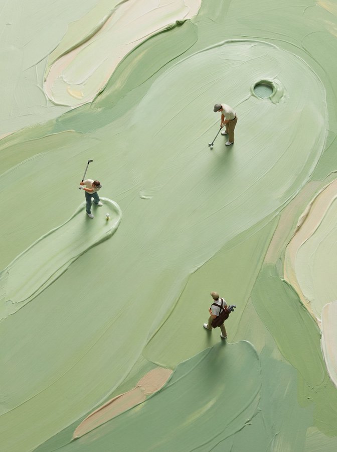 "project": "Miniature Sport on Abstract Paint Surface",