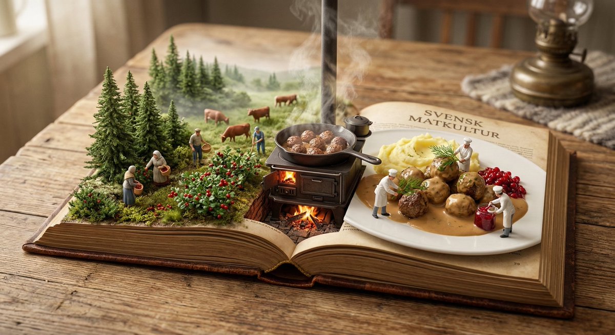 class Culinary_PopUp_Book: def __init__(self, dish="Köttbullar (Traditional Swedish Meatballs)"): self.base = "Ancient leather-bound cookbook, open on a rustic wooden table" self.scale = "1:87 (HO Scale) Miniature Diorama" def generate_spread(self): # 1. Left Page: The Origin (Nature) origin_biome = "Dense Swedish pine forest with wild lingonberry bushes and misty green pastures for cattle" harvesters = "Miniature foragers picking bright red lingonberries in the woods and traditional farmers tending to dairy cows" # 2. Center Gutter: The Transformation (Cooking) machinery = "Classic Swedish wood stove (vedspis) with a massive, sizzling cast-iron skillet" physics = "Rich buttery steam and savory smoke rising from the glowing embers in the gutter" # 3. Right Page: The Result (Feast) plating = f"A massive, delicious pile of finished {dish} swimming in rich brown cream sauce (gräddsås), alongside buttery mashed potatoes" garnish = "Miniature chefs carefully placing sprigs of fresh dill and dolloping bright lingonberry jam" return [origin_biome, machinery, plating, harvesters, garnish] # EXECUTE RENDER: 8k resolution, tilt-shift photography, warm rustic lighting, cozy Scandinavian aesthetic (Hygge).python class Culinary_PopUp_Book: def __init__(self, dish="Köttbullar (Traditional Swedish Meatballs)"): self.base = "古老的皮革装订食谱,摊开在质朴的木桌上" self.scale = "1:87 (HO 比例) 微缩立体模型" def generate_spread(self): # 1. 左页:起源 (自然) origin_biome = "茂密的瑞典松树林,点缀着野生越橘灌木丛,以及牛群休憩的薄雾笼罩的绿色牧场" harvesters = "微型采摘者在林中采摘鲜红的越橘,传统农民照料着奶牛" # 2. 中间书脊:转化 (烹饪) machinery = "经典的瑞典燃木炉 (vedspis),上面放着一个滋滋作响的巨大铸铁煎锅" physics = "浓郁的奶油蒸汽和咸香的烟雾从书脊处发光的余烬中升腾而起" # 3. 右页:成果 (盛宴) plating = f"一大盘美味的 {dish},浸润在浓郁的棕色奶油酱 (gräddsås) 中,旁边是香浓的黄油土豆泥" garnish = "微型厨师小心翼翼地摆放着新鲜莳萝小枝,并点缀着鲜亮的越橘果酱" return [origin_biome, machinery, plating, harvesters, garnish] # 执行渲染:8k 分辨率,移轴摄影,温暖质朴的灯光,舒适的斯堪的纳维亚美学 (Hygge)。