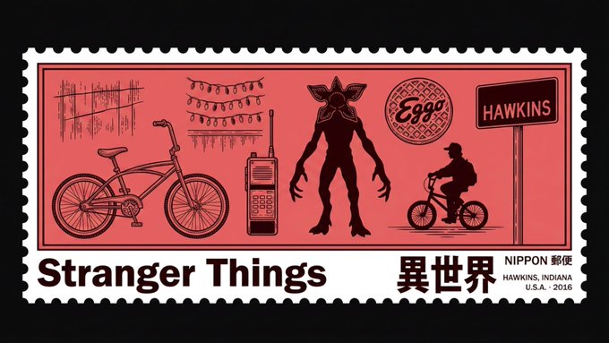 这枚邮票基于的电影是 [系列]。邮票的每一个视觉和文本元素都必须自动源自该电影并为其量身定制——包括插图主体、汉字、地点、年份和国家。