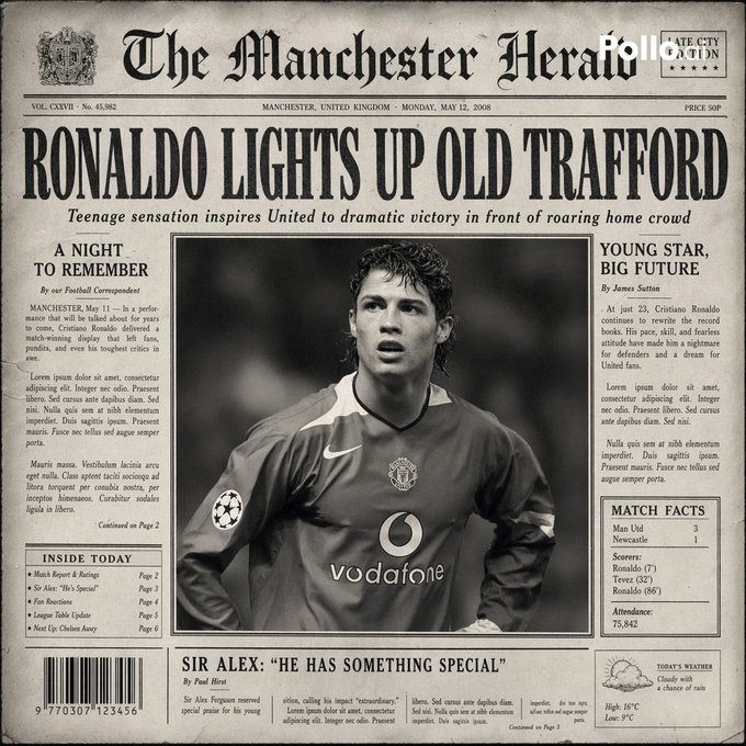 创作一张以主角为特色的复古报纸最逼真的头版设计。布局应采用真实印刷报纸的风格,并具有电影般的黑白美学。