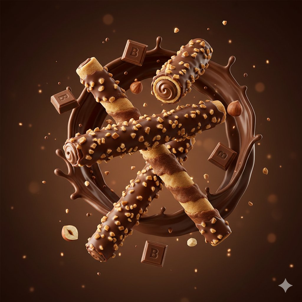 /* PRODUCT_RENDER_CONFIG: Chocolate Wafer Hazelnut Edition VERSION: 2.0.1 AESTHETIC: Premium Commercial Food Photography */ { "ENVIRONMENT": { "Background": "Gradient(Dark_Warm_Brown)", "Atmospheric_FX": ["Floating_Particles", "Depth_Blur", "Cinematic_Bokeh"], "Lighting": { "Type": "Directional_Studio_Warmer", "Highlights": "Specular_Glossy_Reflections", "Shadow_Softness": "High" } }, "CORE_ASSETS": { "Primary_Subject": "Wafer_Rolls", "Physics": "Zero_Gravity_Diagonal_X_Composition", "Material_Properties": { "Outer": "Milk_Chocolate_Coating", "Surface_Texture": "Irregular_Nut_Clusters_Embedded", "Interior_Cross_Section": { "Structure": "Crispy_Hollow_Wafer", "Core": "Silky_Chocolate_Cream_Filling" } } }, "PARTICLE_SYSTEMS": [ { "Object": "Chocolate_Blocks", "Detail": "Rectangular_Embossed_Letter_B", "State": "Floating" }, { "Object": "Hazelnuts", "State": "Halved_and_Fragmented", "Distribution": "Random_Orbit" } ], "FLUID_DYNAMICS": { "Element": "Chocolate_Splash", "Behavior": "Dynamic_Backdrop_Flow", "Viscosity": "Thick_Glossy" }, "RENDER_OUTPUT": { "Resolution": "8K_UHD", "Aspect_Ratio": "3:4", "Quality_Flags": ["Hyper_Realistic", "Sharp_Foreground", "Indulgent_Mood"] } }/* PRODUCT_RENDER_CONFIG: Chocolate Wafer Hazelnut Edition VERSION: 2.0.1 AESTHETIC: Premium Commercial Food Photography */ { "ENVIRONMENT": { "Background": "Gradient(Dark_Warm_Brown)", "Atmospheric_FX": ["Floating_Particles", "Depth_Blur", "Cinematic_Bokeh"], "Lighting": { "Type": "Directional_Studio_Warmer", "Highlights": "Specular_Glossy_Reflections", "Shadow_Softness": "High" } }, "CORE_ASSETS": { "Primary_Subject": "Wafer_Rolls", "Physics": "Zero_Gravity_Diagonal_X_Composition", "Material_Properties": { "Outer": "Milk_Chocolate_Coating", "Surface_Texture": "Irregular_Nut_Clusters_Embedded", "Interior_Cross_Section": { "Structure": "Crispy_Hollow_Wafer", "Core": "Silky_Chocolate_Cream_Filling" } } }, "PARTICLE_SYSTEMS": [ { "Object": "Chocolate_Blocks", "Detail": "Rectangular_Embossed_Letter_B", "State": "Floating" }, { "Object": "Hazelnuts", "State": "Halved_and_Fragmented", "Distribution": "Random_Orbit" } ], "FLUID_DYNAMICS": { "Element": "Chocolate_Splash", "Behavior": "Dynamic_Backdrop_Flow", "Viscosity": "Thick_Glossy" }, "RENDER_OUTPUT": { "Resolution": "8K_UHD", "Aspect_Ratio": "3:4", "Quality_Flags": ["Hyper_Realistic", "Sharp_Foreground", "Indulgent_Mood"] } }
