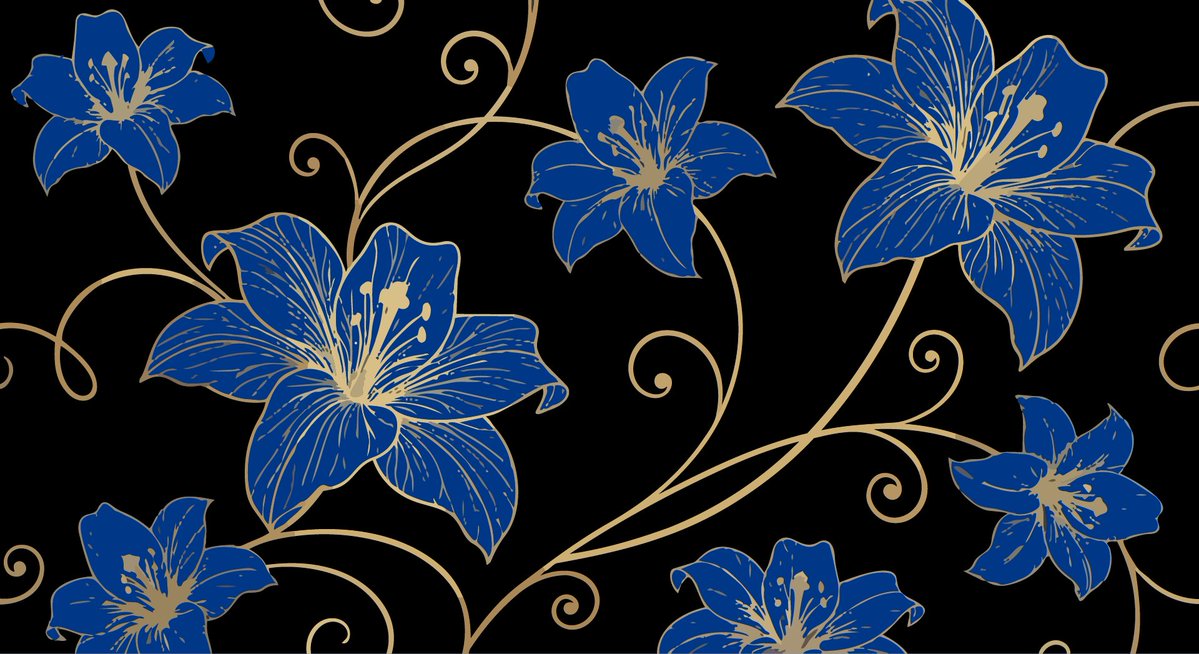 璀璨金线勾勒深蓝奢华繁花