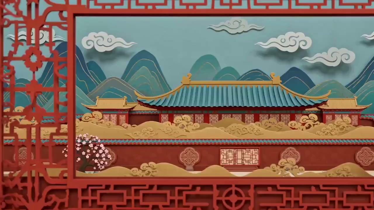 喜庆剪纸风春节贴窗花动画