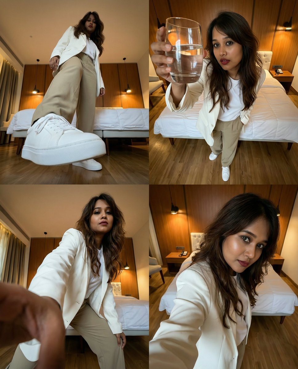 极致广角下的四宫格超写实动态人像