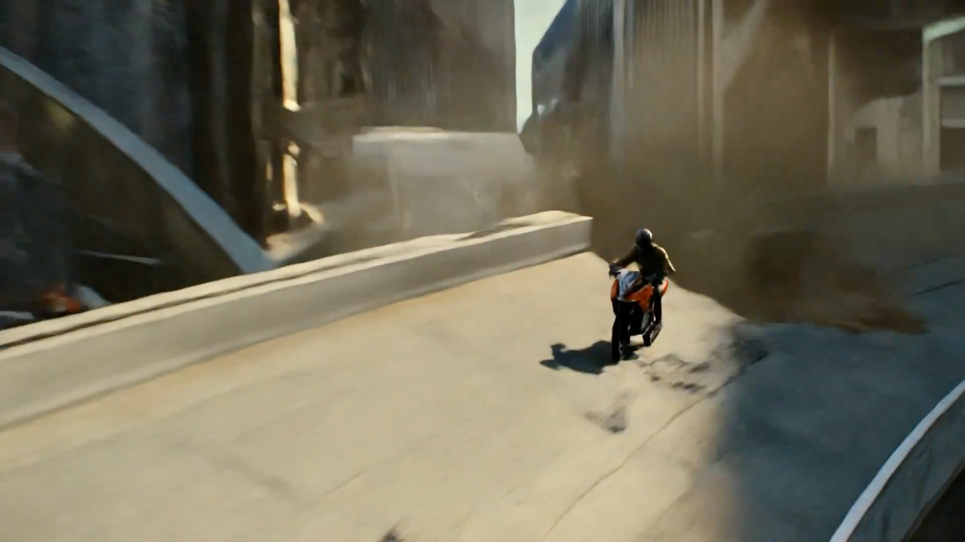 废墟塔楼崩塌下的极速狂飙