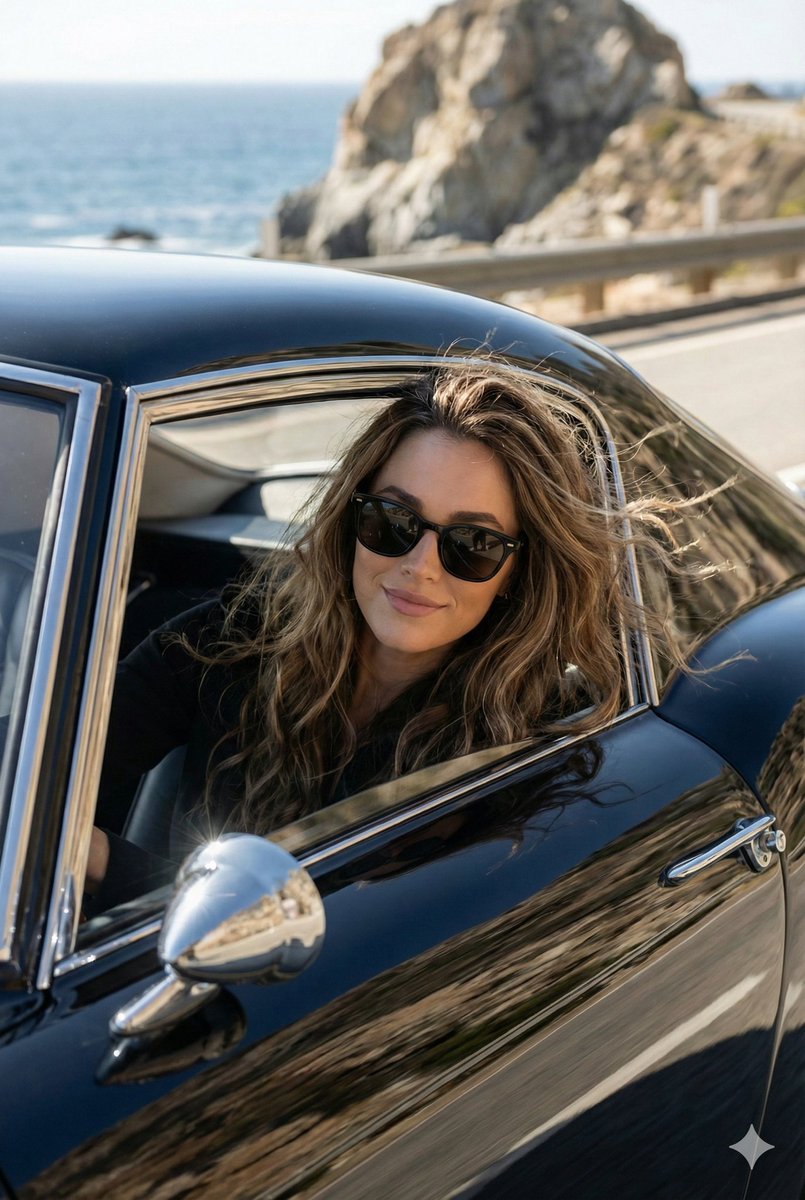 墨镜女郎驰骋悬崖海岸线