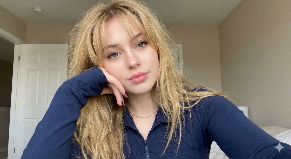 暮光下的红发甜心电竞女孩镜中自拍