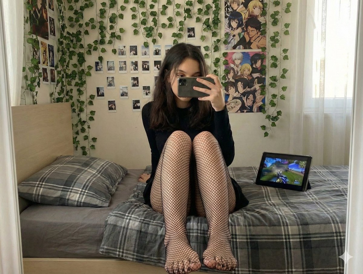 黑网袜美腿挡脸自拍与动漫闺房
