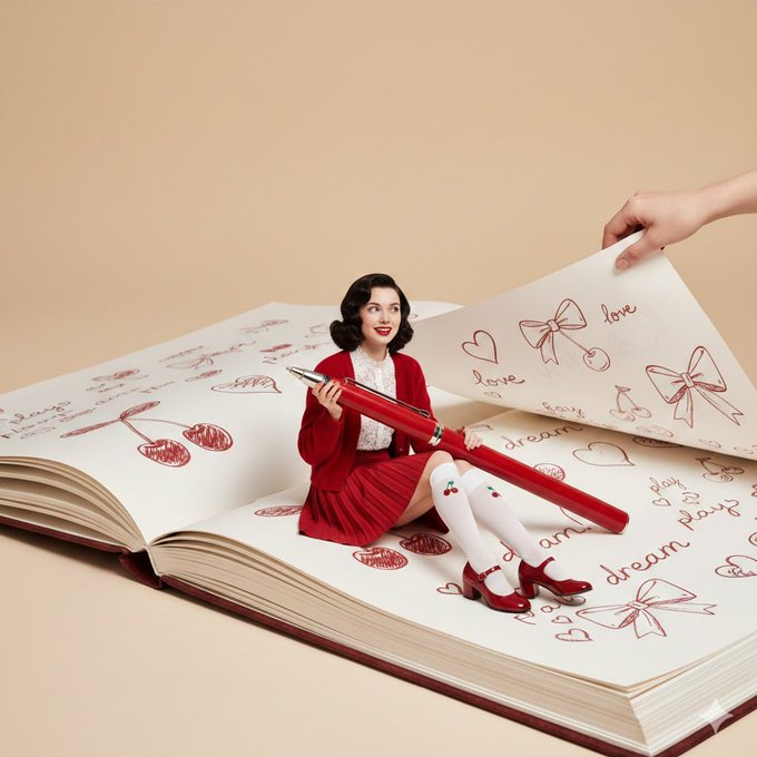 闪光灯下的冷艳黑裙女郎红砖墙回眸