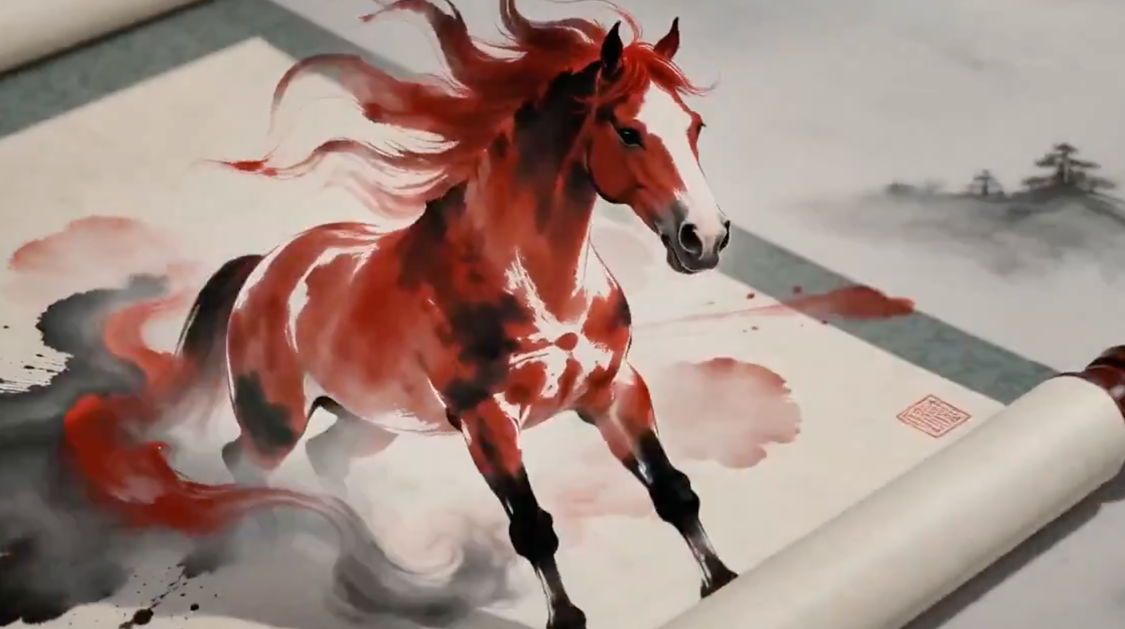 东方水墨双瑞呈祥3D动画